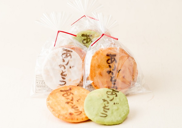 甘いお菓子が苦手な方に贈る時におすすめなのがこちらの「ありがとう煎餅」。煎餅の味は、しょうゆ味・白雪・抹茶味の3種類から選ぶことができます。煎餅に大きく「ありがとう」の文字が書かれているので、一目見ただけで感謝の気持ちが伝わります。