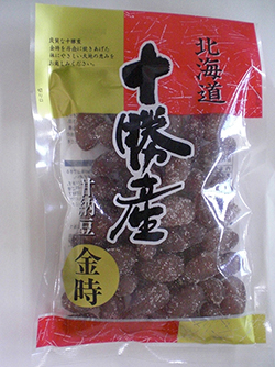 北海道では赤飯を炊くときに金時豆の甘納豆を入れる風習があり、米売場のそばで甘納豆が売られている事もよくあります。その中でも木村製菓の金時甘納豆はメジャーな商品です。