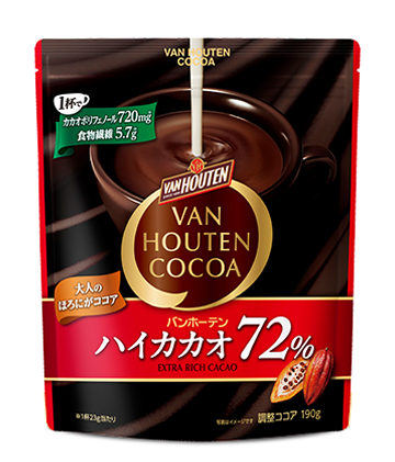 ピュアココアが72%配合された甘さ控えめの濃厚ココアが楽しめる「大人のココア」。ピュアココアの配合率が高いので少し溶けにくいですが 、カカオ感の強いココアが飲みたい方にオススメの「大人のココア」です。