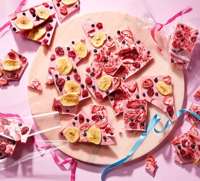 普通のチョコレートからピンク色のチョコレートに変えて作るだけで、みんなに「かわいい!」と言ってもらえるような魅せる手作りチョコレートが完成♪