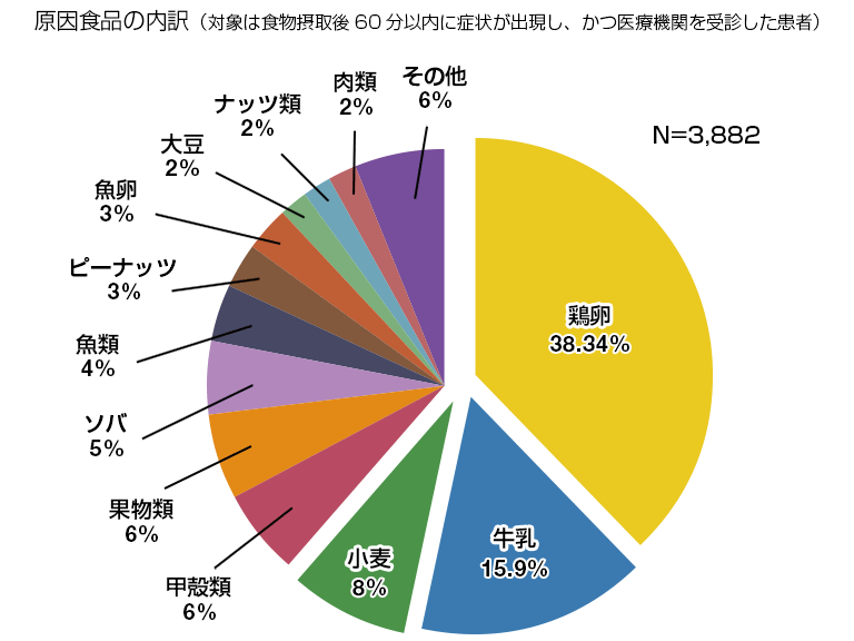 食物アレルギーの原因食物は鶏卵・牛乳・小麦がトップ3