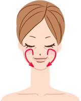 ・下記のように3本の指を使って、頬の内側から外側にかけて大きく円を描くように流していきます。