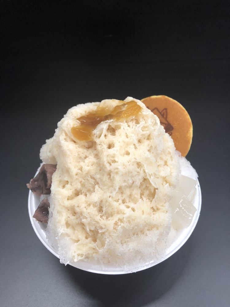 まずは「真菓會(しんかかい)」イートインコーナーで菓子博の広告の顔にもなっている「しんか氷」をいただきました。